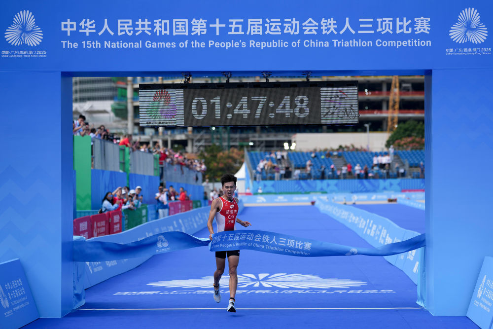 新华社香港11月15日电(记者周万鹏、孟佳)第十五届全运会铁人三项比赛15日在香港开赛。河南队选手范俊杰和中国公安体协选手黄安琪表现出色,分别获得男子、女子个人项目金牌。 11月15日,河南队的范俊杰率先冲线,最终夺得冠军。新华社记者 吴路 摄 铁人三项赛结合了游泳、自行车和长跑。个人比赛总距离51.5公里,其中游泳1.5公里、自行车40公里、跑步10公里。当天男子个人赛共有49人参加,最终有28人胜利完成比赛。两届全国比赛冠军白发权和上届冠军李明旭均代表C赛中国公安体育协会未能完成比赛。河南队选手范俊杰将上届铜牌“升级”为金牌。比赛期间,他在游泳阶段获得第二名。他从变化的项目中继续发挥,以1小时47分47秒的成绩获得冠军。辽宁队的陈伟和香港队的奥斯卡分别获得银牌和铜牌。 11月15日,河南队范俊杰(左)改变了比赛的事件。新华社发(王沉 摄)“这里的风景很美,但我太累了,无法欣赏。”范俊杰赛后透露,自己在最后两圈跑中大腿受伤,靠着意志力支撑到了最后。 “我知道自己的长处和短处,在比赛中我尽力根据自己的特点来分配自己的体能。这枚金牌证明了我在过去四场比赛中的努力女子个人赛中,上届全国冠军黄安琪上演逆袭,成功卫冕。在游泳阶段仅排名第15名后,他奋力追赶,先是在自行车阶段提升到第四位,随后又到了跑步阶段,最终以1小时59分16秒的成绩获得冠军,四川队的林心语、魏文分别获得银牌和铜牌。 11月15日,中国公安体协队队员黄安琪在跑步比赛中(路晓伟摄)“过程很艰难,但我始终相信我能(夺金)”,黄安琪赛后表示,“跑步本身就是我的优势。” “当我抓住最后一个时,我感到更加轻松,信心十足。”本次全国运动会铁人三项共收获了3块金牌。16日,比赛将拉开帷幕。混合接力比赛。